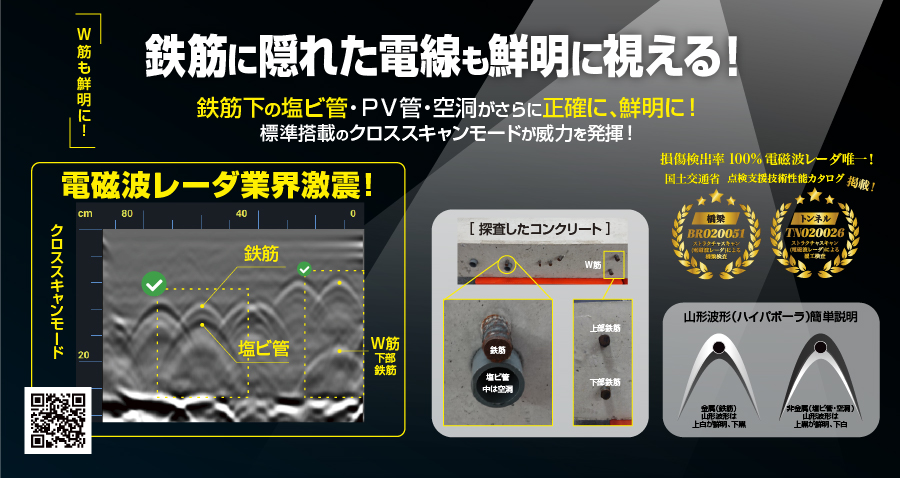 電磁波レーダ・鉄筋腐食探知器搭載!